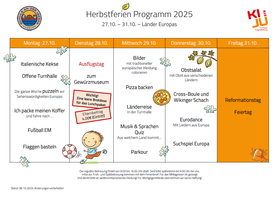 Die Herbstferien vom 20. bis 31. Oktober 2025 bieten Kindern und Jugendlichen in Eimsbüttel wieder eine bunte Vielfalt an spannenden und abwechslungsreichen Freizeitaktivitäten – viele davon kostenfrei oder mit einem kleinen Kostenbeitrag.