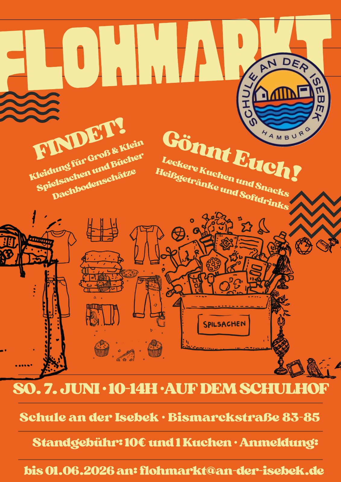 Veröffentlicht am 29. April 2026 von schule-an-der-isebekFlohmarkt am 7. Juni von 10 – 14 Uhr auf dem Schulhof Bismarckstraße